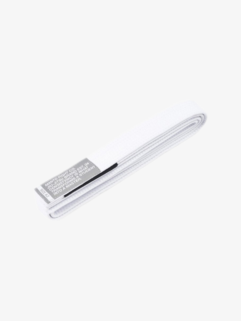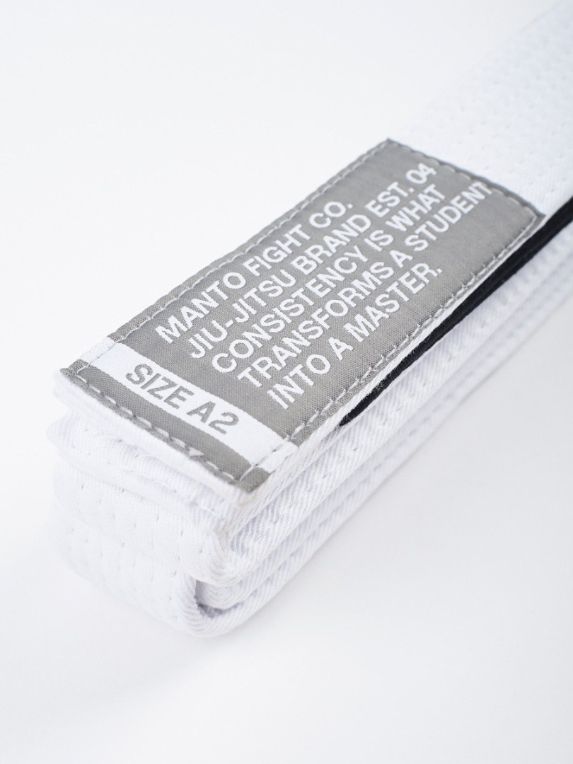 Pas do Brazylijskiego Jiu-Jitsu firmy MANTO z naszywką zawierającą tekst motywacyjny.